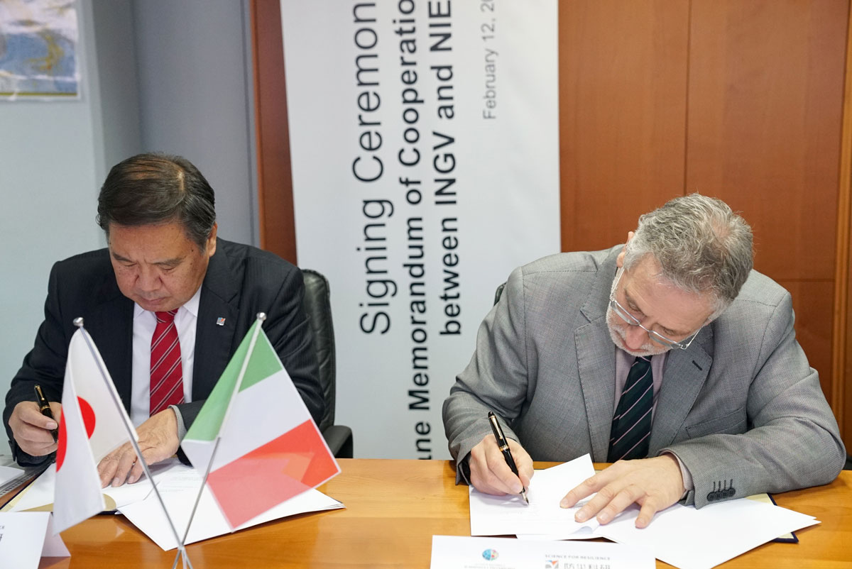 Firmato l’accordo tra INGV e NIED per la ricerca e la mitigazione dei rischi naturali
